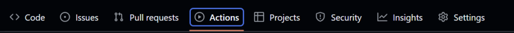 GitHubの上部メニューの「Actions」がGitHub Actionsです。