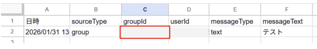 日時sourceTypegroupIduserIdmessageTypemessageText