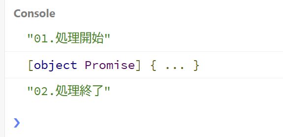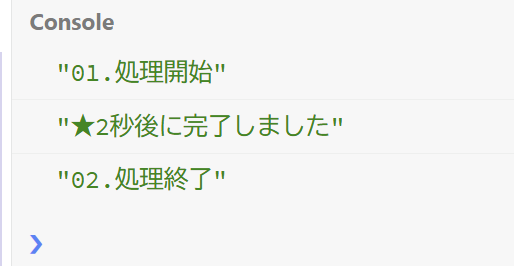 const result = await delayTask(); //awaitなしでPromiseの処理を実行