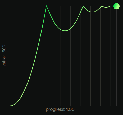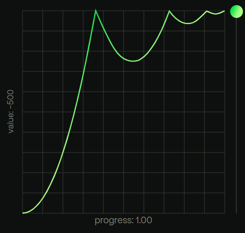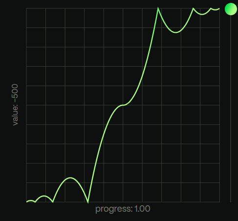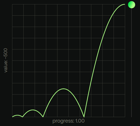 例えば、bounceだと以下のようなカーブを描きます。