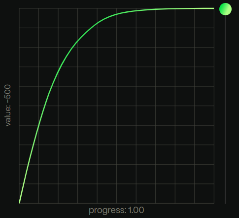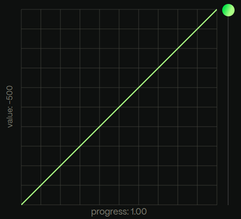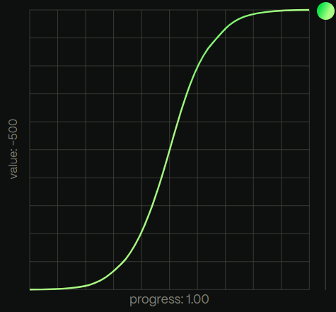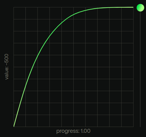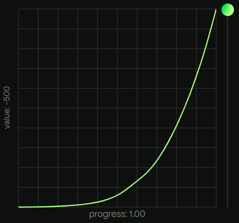 powerは、二乗のカーブに基づいたイージングで、数字が大きくなるほど、イージングのカーブが強くなります。