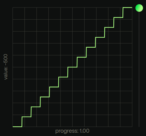stepsにすると段差を少しづつ上がるような動きになります。