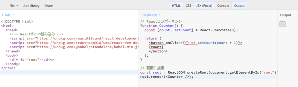 ここでは、React.jsを使ってカウンターを作成する例を紹介します。