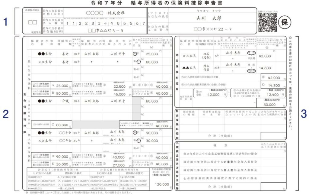 - 生命保険料控除(生命保険、介護医療保険、個人年金保険)