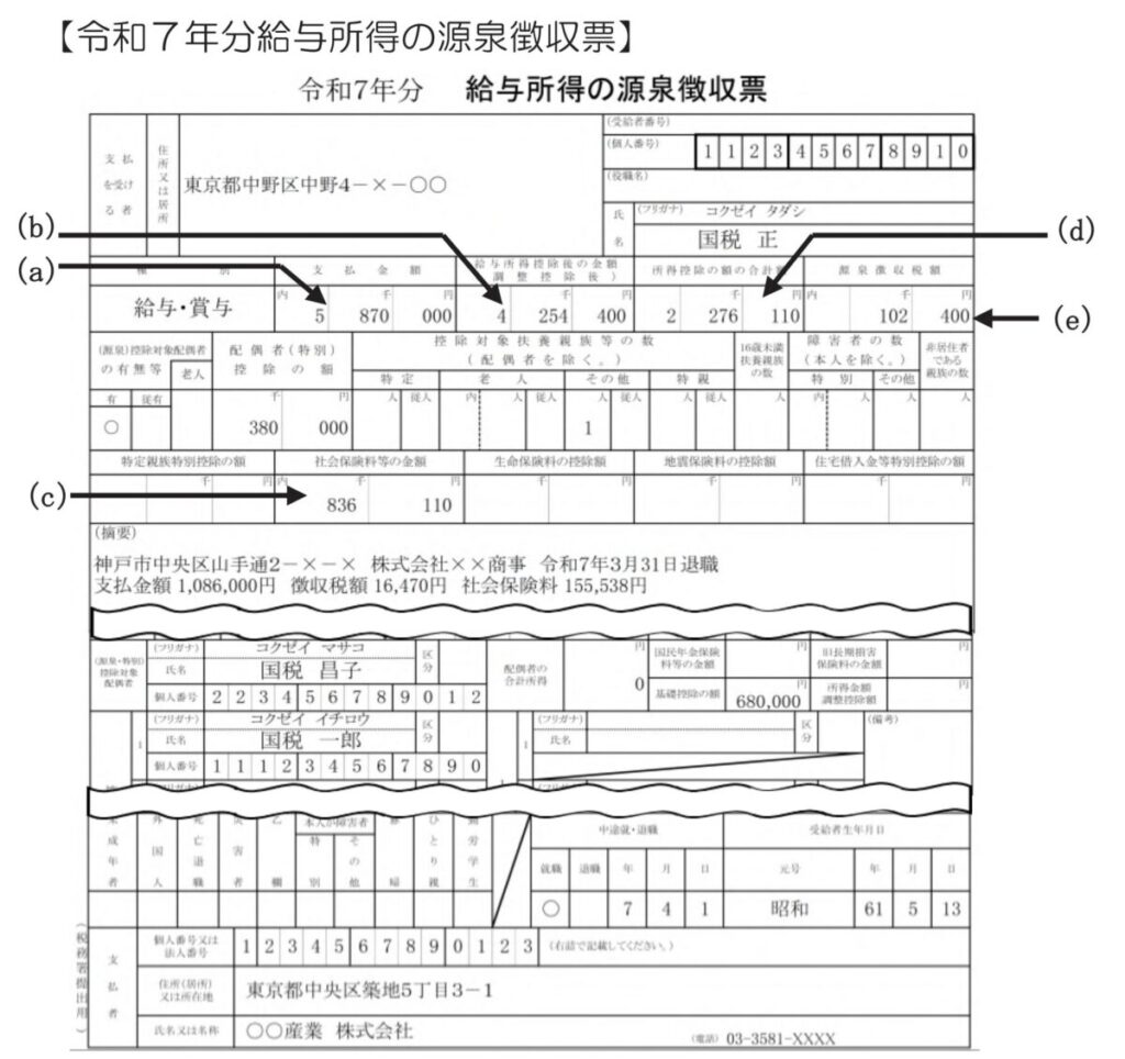 - 2枚目:給与所得の源泉徴収票(税務署提出用)