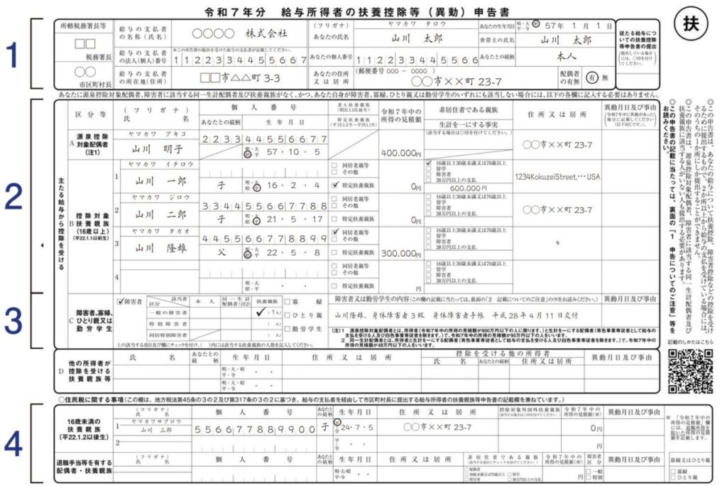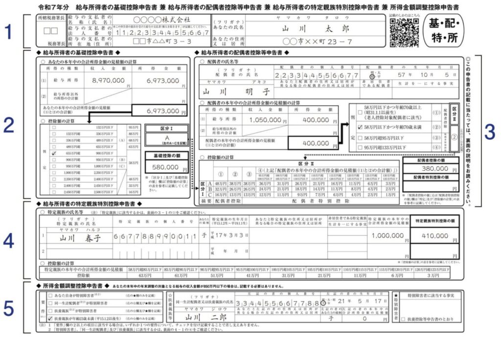 「自身の年収」「配偶者控除」「所得金額調整」の3つの申告を1枚にまとめたものです。