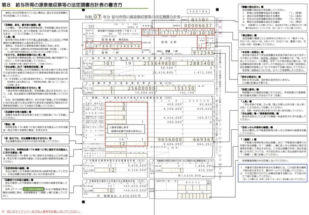 【法定調書合計表】給与所得の源泉徴収票等の法定調書合計表