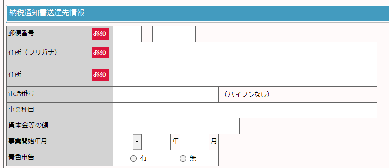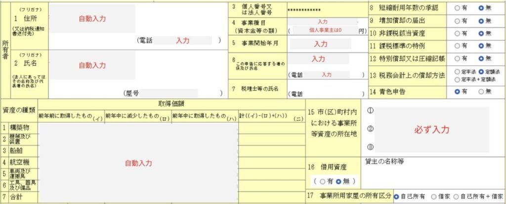 登録した内容が自動的に「償却資産申告書」に入ります。残りの必要な情報を入力していきます。