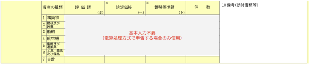 全資産申告は、所有する償却資産すべての評価額を自らの電算システムで算出したうえで申告する場合に使用します。