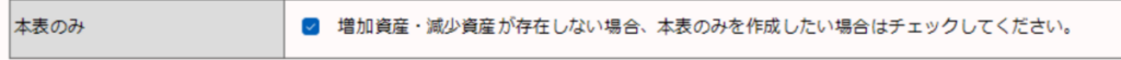 「本表のみ」にチェックを入れた場合は、「増加資産登録」などの画面ではなく、様式選択の画面に移ります。