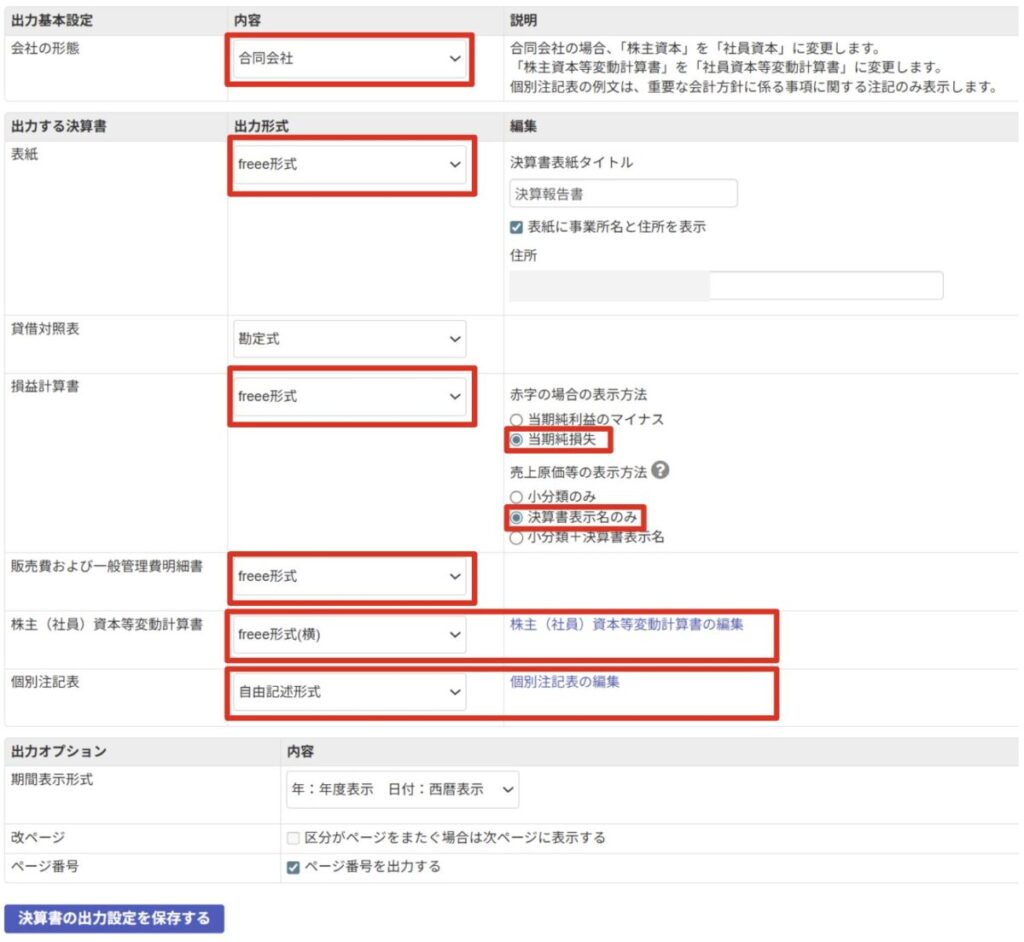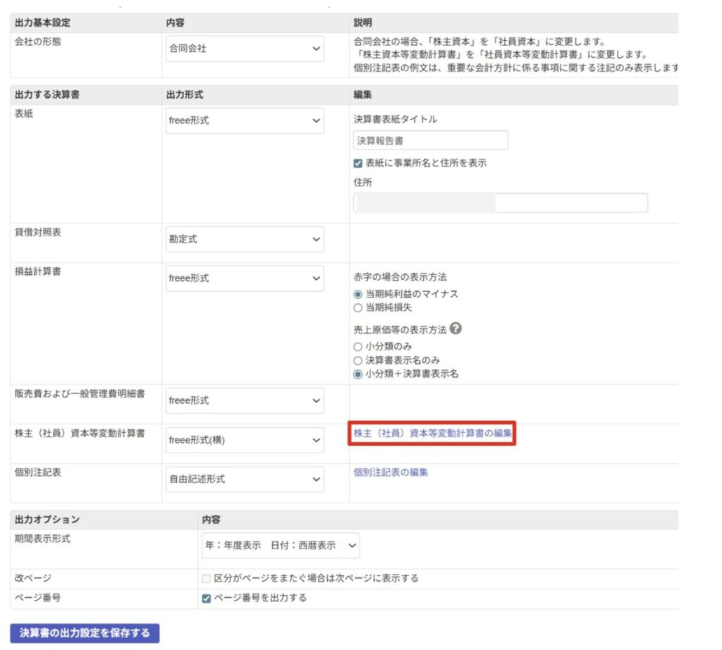 設定を保存する前に以下の「株主(社員)資本等変動計算書」と「個別注記表」の作成を行ってください。