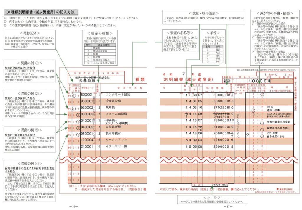 種類別明細書(減少資産用)