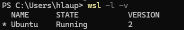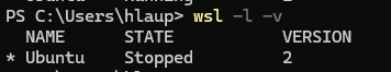 wsl --shutdownなお、WSL2が動いているか停止しているかは以下のコマンドで確認できます。