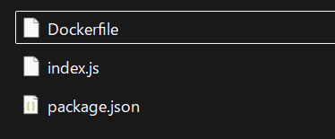作成の順番としては、package.jsonとindex.jsを作成しておき、それをDockerfileの中で指定する流れになります。