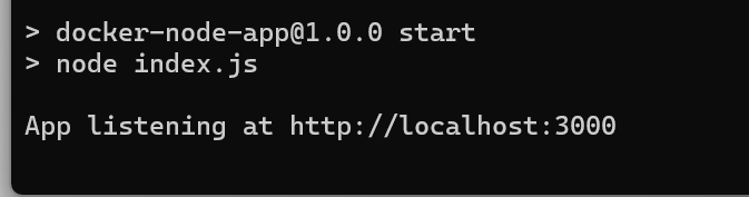 これにより、npmがコンテナ内のpackage.jsonを探し、scriptプロパティの中の、startスクリプトを実行します。