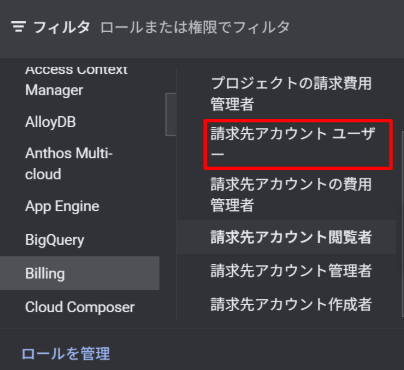※割り当てるには、請求先作成/選択画面で、Googleアカウントを切り替え、権限を付与する必要があります。付与する権限は「請求先アカウントユーザー」です。