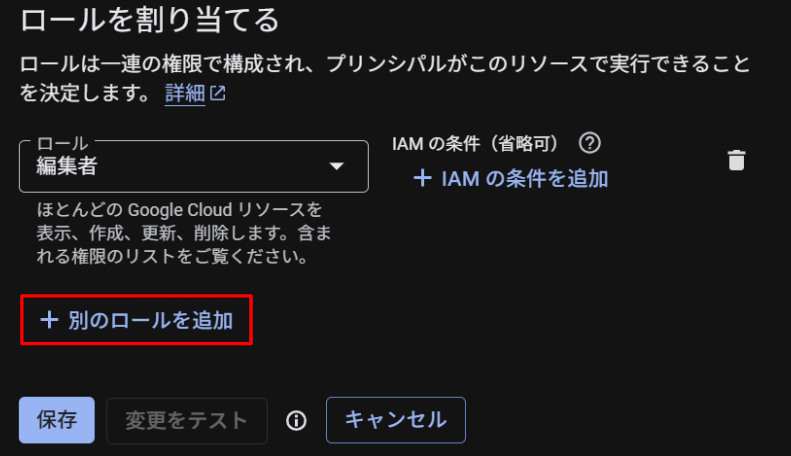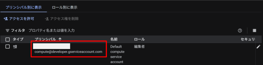 「[プロジェクト番号]@cloudbuild.gserviceaccount.com」というプリンシパルが存在するので編集アイコンをクリックします。(※プロジェクト番号は、エラーログにあったproject=1111111111 です)