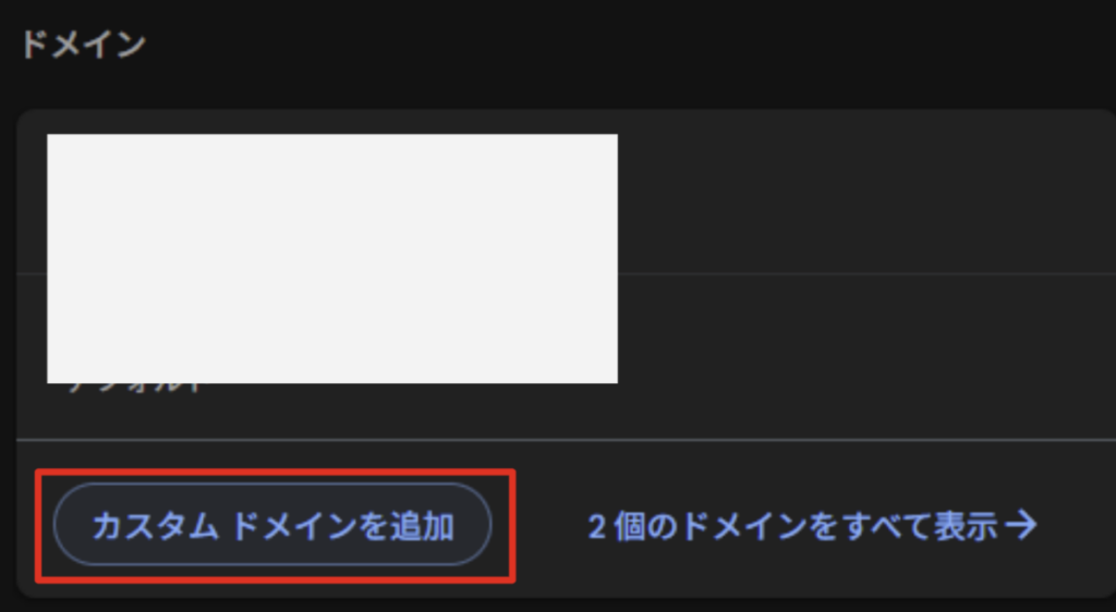 「カスタムドメインを追加」をクリックします。