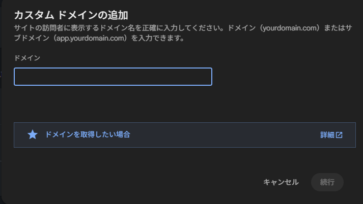 追加したいドメインを入力し「続行」をクリックします。