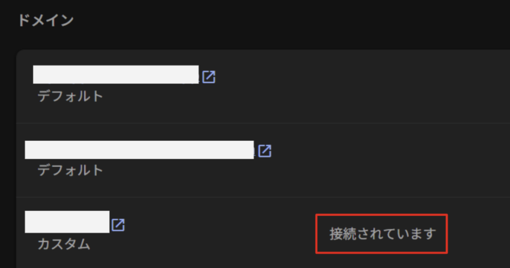 Firebase Hostingにドメインを追加すると、自動でSSL証明書の取得が開始します。証明書が取得できると、「接続されています」と表示されます。