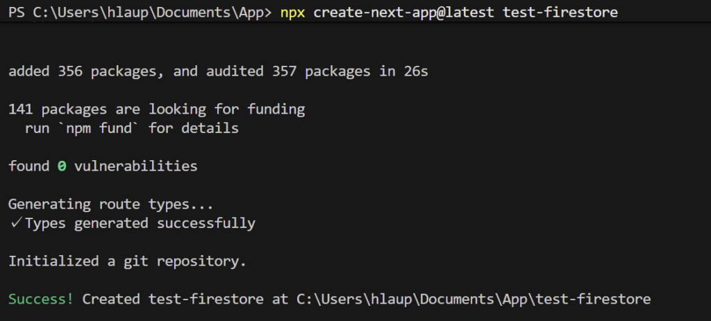 npx create-next-app@latest test-firestorenext.jsでプロジェクトを作成する方法は下記をご参考ください。