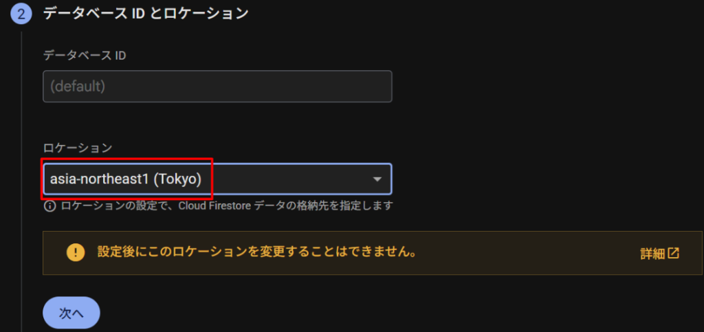 FirestoreでDBを作成する
