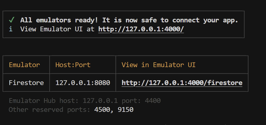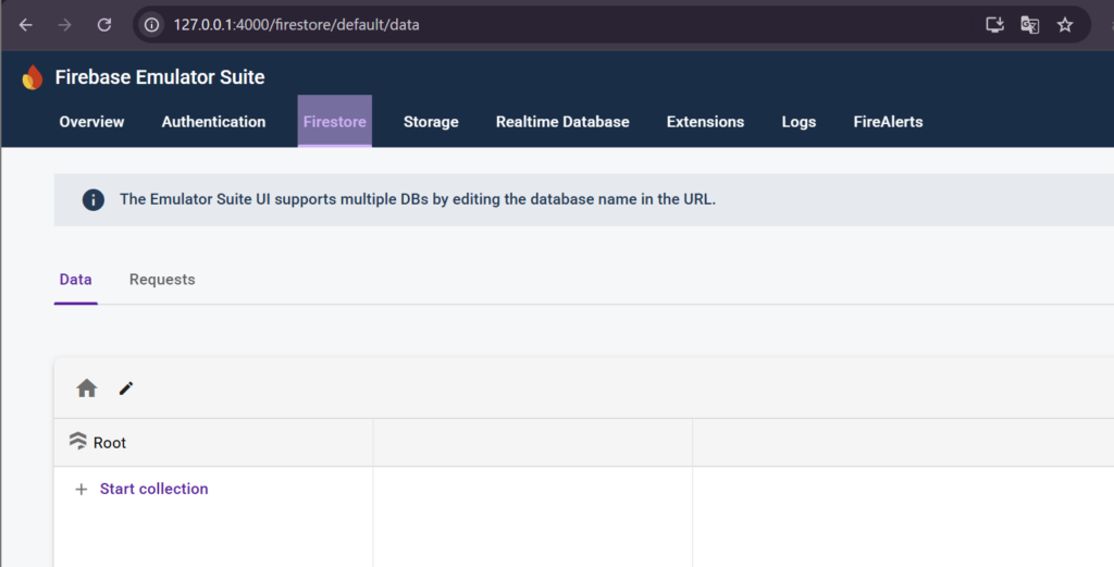 firebase emulators:start --import=./saved-data --export-on-exitこれで、Firebaseエミュレーターが起動します。