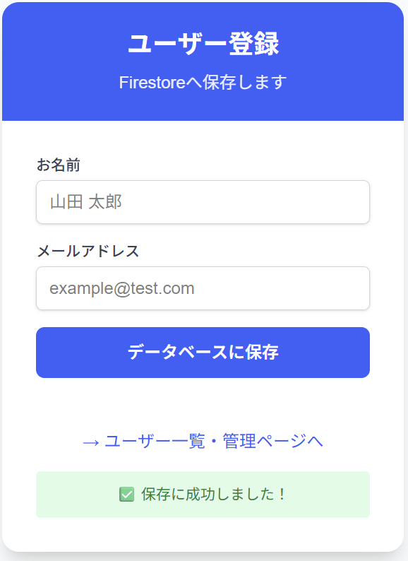 なおブラウザの下部にはFirebaseエミュレーターを使っていることが表示されています。
