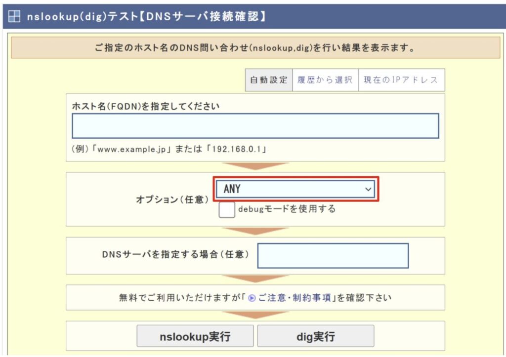 ですが、第三者の外部サーバーから見たDNS情報を知りたいときはCMANのnslookup(dig)テストが便利です。
