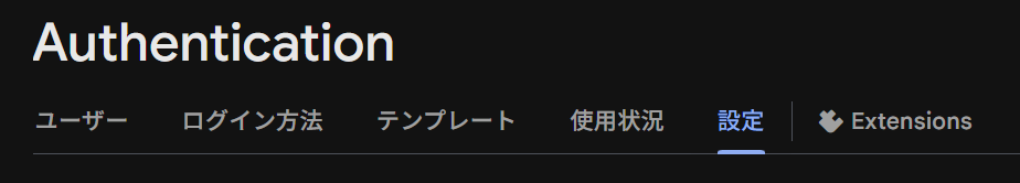 Firebaseコンソールに入り「Authentication > 設定」へと進みます。