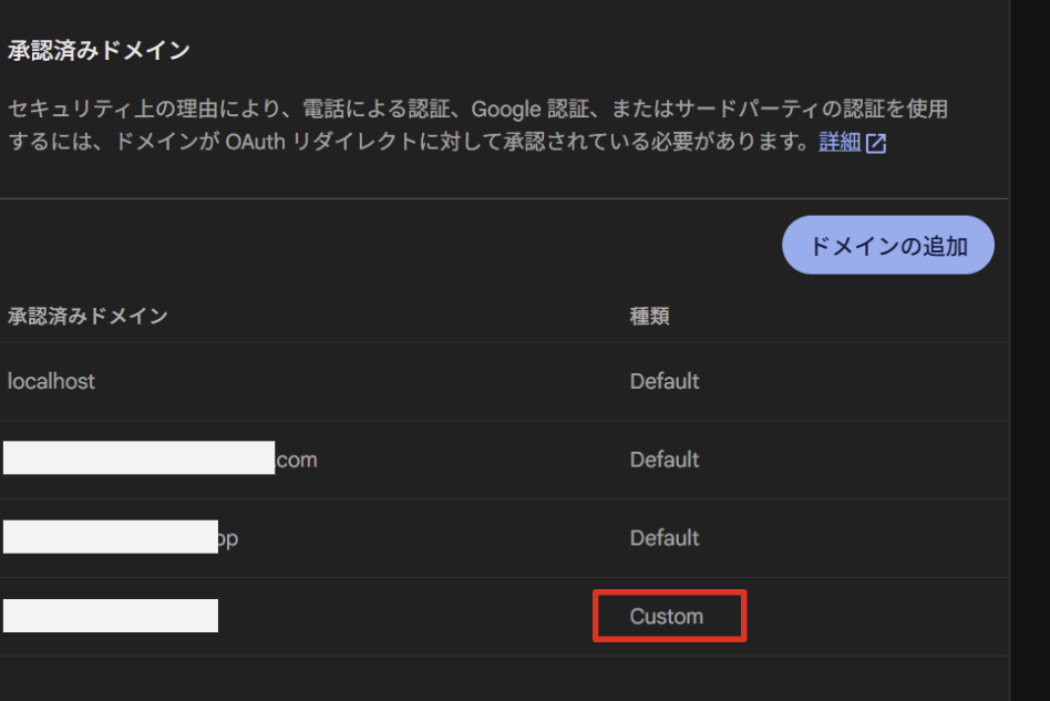 対処法は簡単です。Authenticationに対象のドメインを登録するだけです。